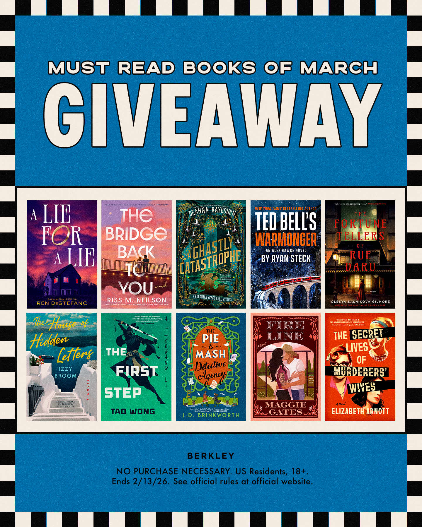 Check out this awesome giveaway courtesy of Berkley! Lots of fab titles in there–I spy A GHASTLY CATASTROPHE up for grabs. Enter through 2.13.26. Good luck!